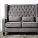Classic beauty never goes out of style. This wingback loveseat features gorgeous tufting along the back while nailhead trim runs along the sloped track arms. Two accent pillows come paired with the removable seat cushions, offering extra comfort when needed.