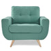 Mid-Century modern design is the inspiration for the Deryn Collection. Wide, dramatically curved arms rise to the straight back that is synonymous with this classic style. Tailored stitch tufting lends further accent to this thoroughly chair.