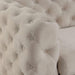 SAPPHIRA Chair, Beige, 43"L X 35 1/2"W X 27"H (SEAT HT: 19", SEAT DP: 24"), 79.9lbs. Take a look at this plush chair and imagine sinking into them after a long, hard day. Sit on the smooth seat cushions while you run your hands on the deeply tufted arms. Lean back and rest your head on the soft flannelette fabric while you pull a pillow closer and rest your arms on it. The striking looks are hard to ignore as well; its steel legs are polished in chrome to bring that irresistible modern appeal.
