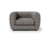 This compact living room ensemble is full of welcomed surprises. The tall arms and low back is an obvious homage to the tuxedo style, but the bulbous shape and smoother lines is a unique twist taking inspiration from the modern era. Underneath the seat cushions are high density foam, making firmer seats than one would expect for the shape that it is in. Finally, soft boucle fabric wraps around the whole piece highlighting a certain air of elegance and quiet class.