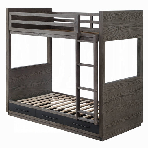 ACME EastACME Darlene Twin/Twin Bunk Bed, Rustic Gray, 77" x 43" x 90"H, 145lbs. Make bedtime fun again with the Darlene Bunk Bed. This sturdy piece is expe...