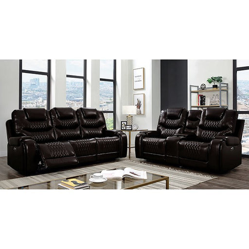 FOA EastClassic style and functional design come together in this handsome love seat. It includes a center console with cupholders and a small storage comp...