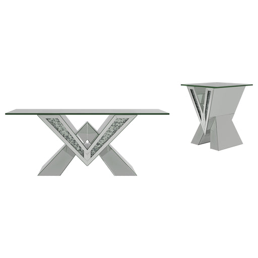 Coaster Z2 StandardThis mirrored coffee table set brings modern luxury to any living space. Featuring a coffee table and matching end table, both pieces boast bold V-...