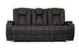 AMIRAH Sofa, 83"L X 39 1/2"W X 40 1/2"H, 286.6lbs. Experience the luxurious comfort and contemporary style of this multi-functional sofa with two recliners. The middle seatback features a drop-down table with reading lights, two cup holders, a USB charging port, and an A,C electrical outlet. The arms lift up exposing a storage compartment with ample storage for remotes, phones, and other accessories. The cover is a soft, luxurious, and durable fabric with an accent stitch to highlight the sleek design.