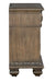 Liberty Furniture Carlisle Court Bedside Chest with Charging Station in Chestnut with Dusty Wax 502-BR62. Indulge in luxury with the Carlisle Court three drawer nightstand with charging station. Crafted with excellence using rubberwood solids and rustic hickory veneers, this nightstand features a Chestnut with Gray Dusty Wax finish. The carved corbels accent fluted pilasters. The base features acanthus leaf carvings and square turned bun feet. There are three full extension drawers that are great for storage. The drawer fronts are wood framed and feature bead molding for added dimension and are accented with Antique Brass knob hardware. The top drawer is felt lined, and the bottom drawer is lined with cedar. Utilize the convenience of the built-in charging station complete with two electrical outlets and two USB ports. Combine the grand feel of the past with today's luxurious lifestyle with the Carlisle Court three drawer nightstand with charging station.